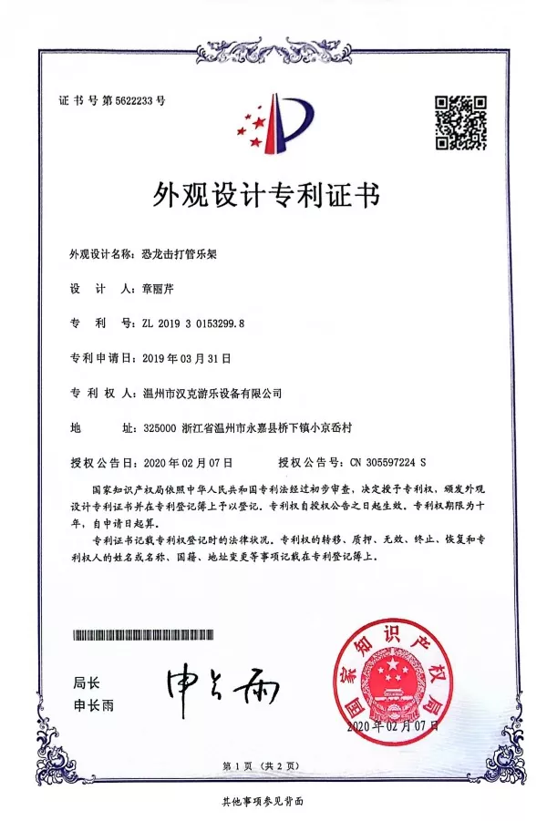 ඩයිනොසෝර හැඩැති බෙර වාදනයේ ප්‍රමාණය 120 * 55 * 140cm වන අතර මිශ්‍ර ලෝහ ඇලුමිනියම්+වීදුරු තන්තු ශක්තිමත් කරන ලද ප්ලාස්ටික්+ ගැල්වනයිස් කරන ලද පයිප්පයෙන් සාදා ඇත. එහි සමස්ත වර්ණය කොළ පාට වන අතර එහි සිරුර මැද විවිධ වර්ණවලින් යුත් ඇලුමිනියම් නල අටක් ඇත. ඔහුගේ පාද යට සිරුරට ආධාර කරන කහ පැහැති ඉලෙක්ට්‍රෝන දෙකක් ඇත. ඩයිනෝසෝරයන්ගේ ලක්ෂණ ඉස්මතු කරන කහ පැහැති සැරසිලි කිහිපයක් හිස සහ බෙල්ලේ ඇත.